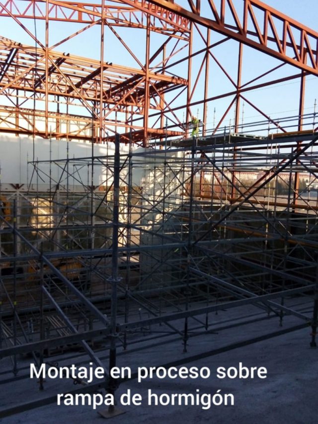 Montaje de andamio en volumen de 8.800 m3 para la realización de una cubierta a distintas alturas e insonorización para el Teatro de la Música en Arroyo de la Encomienda – Valladolid.