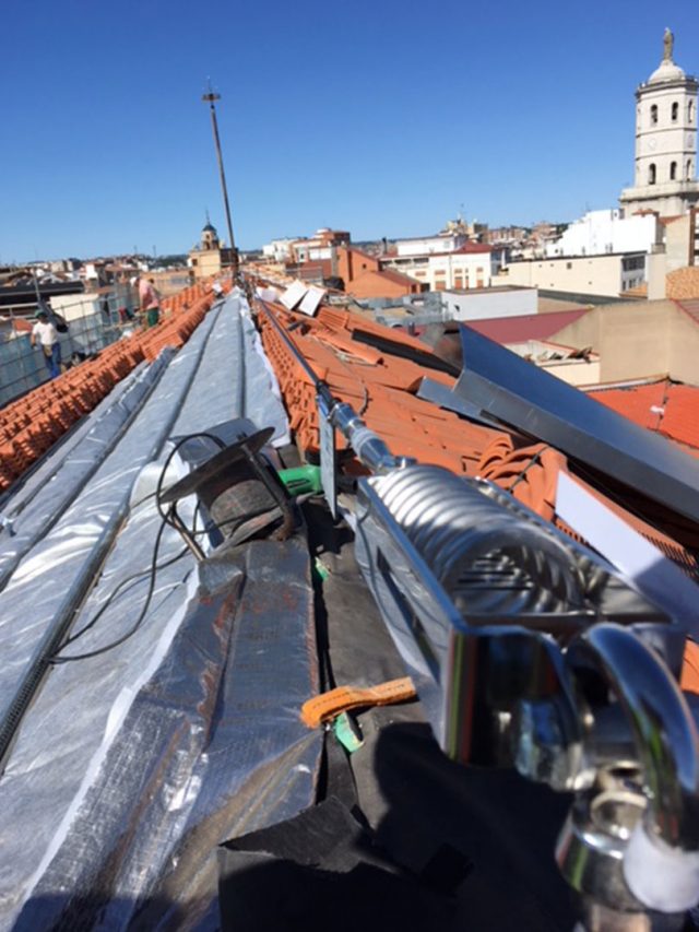 Montaje Línea de Vida para cumplir normativa y aumento de la seguridad en cubierta para obras de retejado en Valladolid
